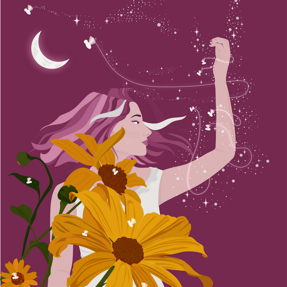 Let nature and the cosmos gently restore your spirit with the Soul Healer Bloom poster — a soulful spiritual poster celebrating healing, growth, and the quiet support of the universe. Featuring an enchanting illustration of a woman standing behind a radiant sunflower, surrounded by bees under a crescent moon, this artwork tenderly reminds you: let the universe heal your soul.